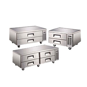 Chef bases are versatile pieces of equipment that not only provide additional refrigeration space, but also serve as equipment stands. Chef bases eliminate the need for chefs to travel back forth across the kitchen to retrieve ingredients from refrigerators and freezers by keeping ingredients or prepared meals close to the cooking station. Cooking equipment such as ovens, fryers and mixers can be placed on top, or the unit can easily slide beneath a prep table. Available in various lengths to cater to all food holding needs.
