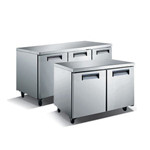Undercounter refrigerators and freezers are compact and fit conveniently underneath countertops, bars, or other preparation surfaces. These units are an essential addition to any restaurant, pizzeria, café or other foodservice establishment and are ideal for storing ingredients such as vegetables, fruits, condiments and spreads. Our selection includes various capacities and sizes to accommodate your space and volume requirements.