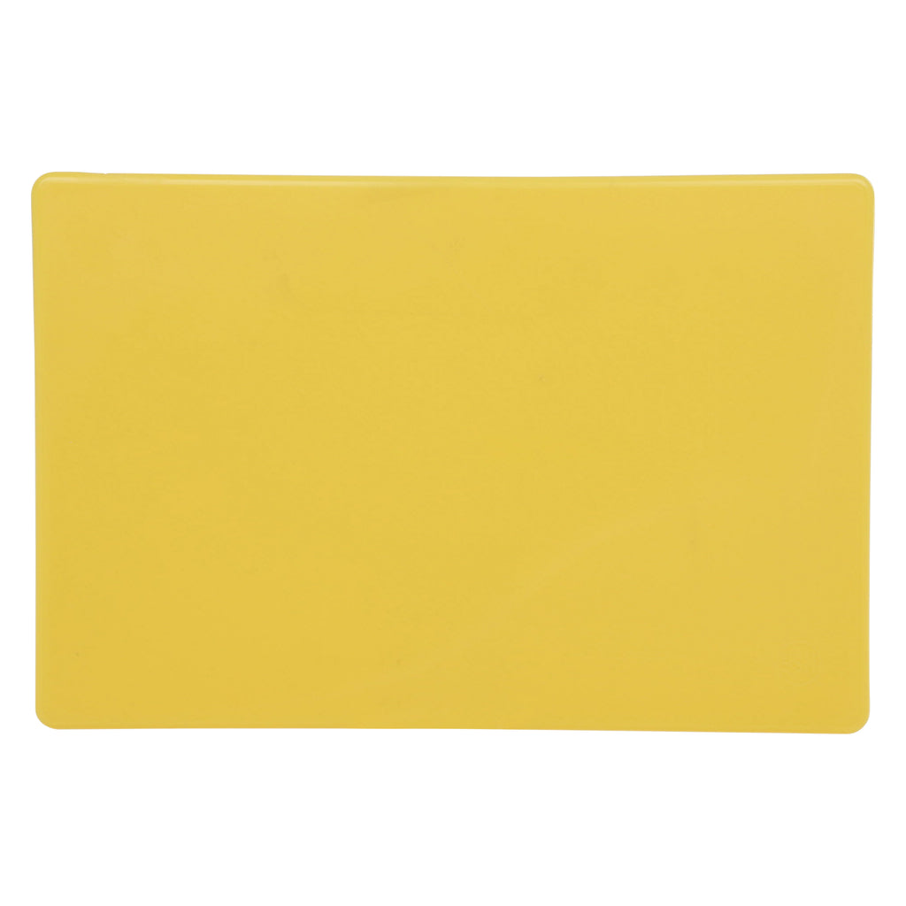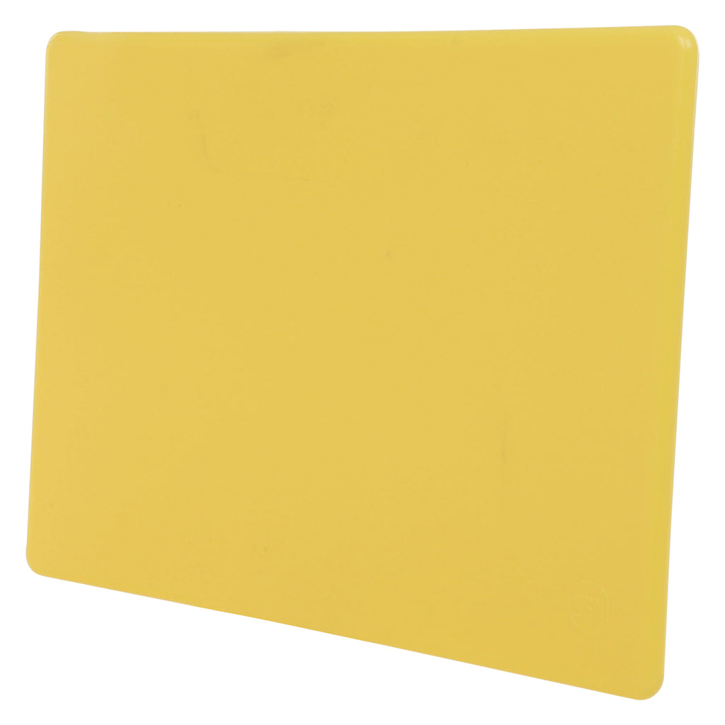 Prevent cross-contamination and add a little color to your kitchen with this high density cutting board. This cutting board is made of high density thermoplastic material that is both non-porous and non-toxic. This board won't crack or absorb liquids and odors. This long lasting reversible cutting board allows for use on both sides. It is lightweight and easy to clean. Yellow, 12 "x 18 "x 1/2". NSF approved.