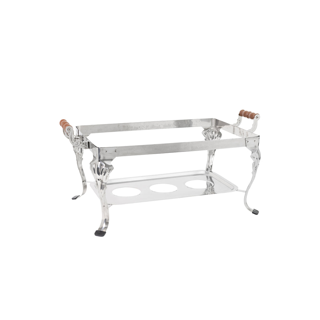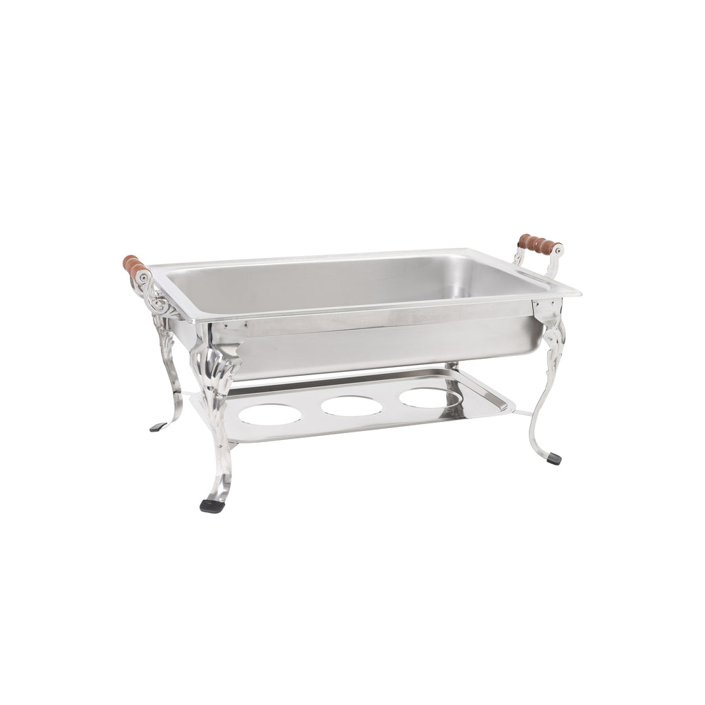 Maintain the temperature of prepared foods while also providing an elegant presentation with the Adcraft Lafayette Chafer. Ideal for use in catering and buffet services to keep food warm during events, this chafing dish is made of durable stainless steel and has an 8-quart capacity. This oblong commercial chafer features a brush finish and wooden handles. This chafing set comes complete with a water pan, food pan, dome cover and two fuel holders. This food warmer maintains the temperature of your prepared dishes while providing a stylish display with an attractive silver exterior and a decorative lid handle. In addition, it's easy to clean. An essential tool in the foodservice industry, the Adcraft Lafayette Chafer offers a practical and tasteful solution for keeping food warm and presentable in any setting.