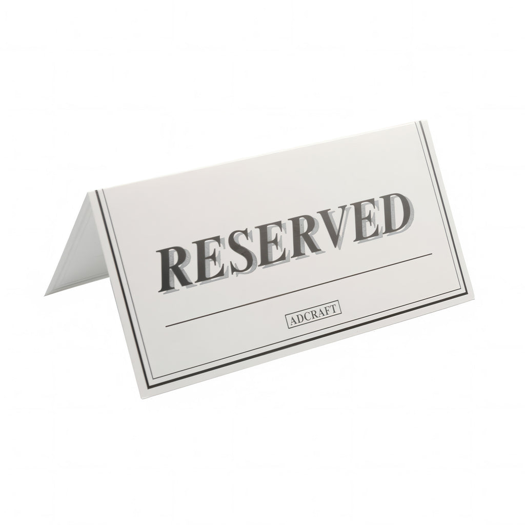 Place the convenient Adcraft "Reserved" Signs near banquet rooms or lounge areas that clearly designate areas reserved for your next special party or events. Constructed of heavy, White, varnished cardboard with bold Black printing on both sides, these specialized 6" x 3" signs also provide a space for customer names, so VIP personnel know exactly where to locate their open table or seat. 48 per pack.