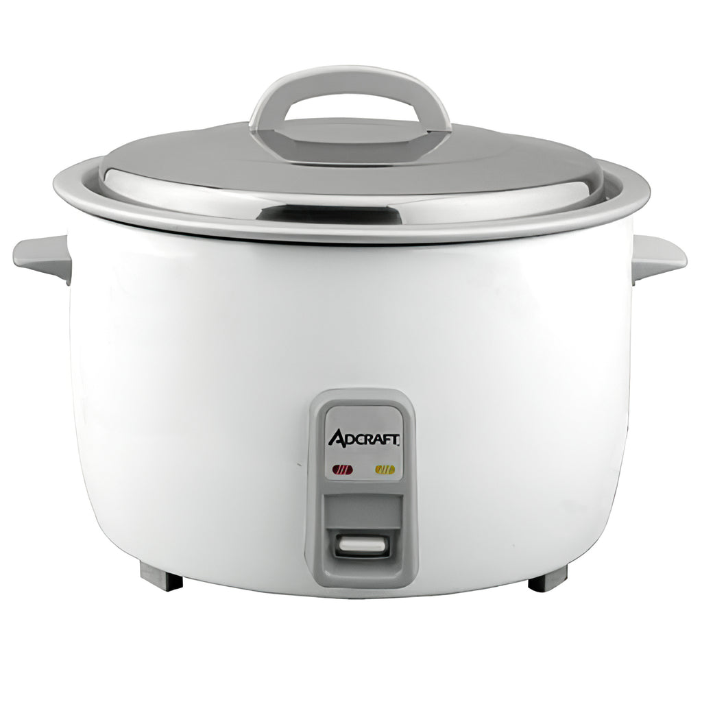 Keep up with the demands of rice preparation in your busy commercial kitchen with the Adcraft Rice Cooker. This 25-cup rice cooker is ideal for quickly cooking up to 25 cups of rice evenly and thoroughly. The Keep Warm feature switches from cooking to warming mode once the rice is done to keep it warm for extended periods of time. This heavy-duty, professional quality large-capacity rice cooker is designed to handle the demands of high-volume rice preparation in your commercial kitchen. The stainless steel lid helps contain the heat, keeping your rice warm. The aluminum interior features easy-to-read measurements. This commercial rice cooker has user-friendly controls and the two handles make it easy to transport. This restaurant rice cooker comes with an oversized plastic fork to scoop and serve the rice and a clear plastic measuring cup to ensure accurate portioning. 120V, 1550W, 13 Amps. Available in various sizes to suit your commercial kitchen, the Adcraft Rice Cooker is ideal for cooking and serving large quantities of rice.