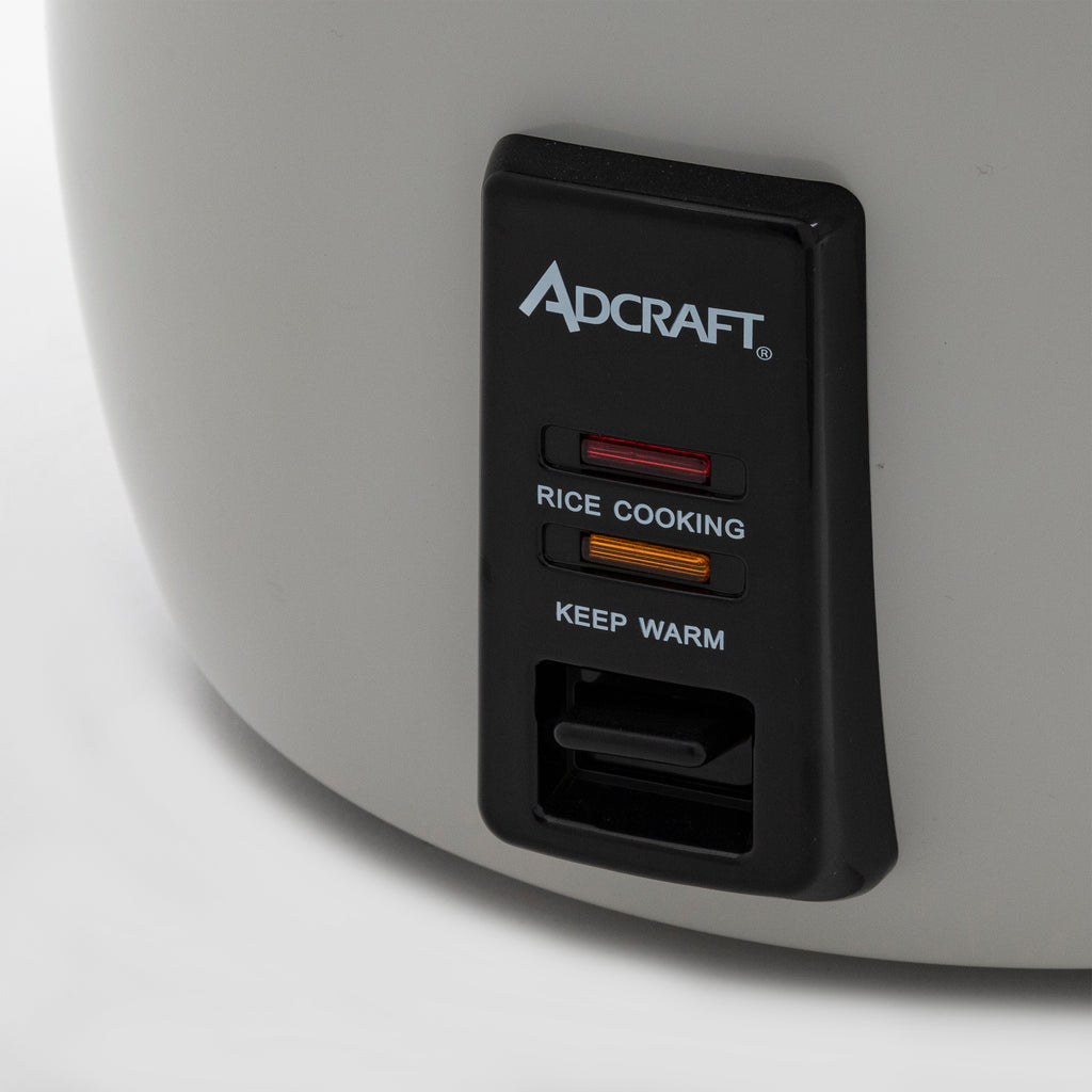Keep up with the demands of rice preparation in your busy commercial kitchen with the Adcraft Rice Cooker. This 30-cup rice cooker is ideal for quickly cooking up to 30 cups of rice evenly and thoroughly. The Keep Warm feature switches from cooking to warming mode once the rice is done to keep it warm for extended periods of time. This heavy-duty, professional quality large-capacity rice cooker is designed to handle the demands of high-volume rice preparation in your commercial kitchen. The stainless steel lid helps contain the heat, keeping your rice warm. The aluminum interior features easy-to-read measurements. This commercial rice cooker has user-friendly controls and the two handles make it easy to transport. This restaurant rice cooker comes with an oversized plastic fork to scoop and serve the rice and a clear plastic measuring cup to ensure accurate portioning. 120V, 1650W, 14.5 Amps. Available in various sizes to suit your commercial kitchen, the Adcraft Rice Cooker is ideal for cooking and serving large quantities of rice.