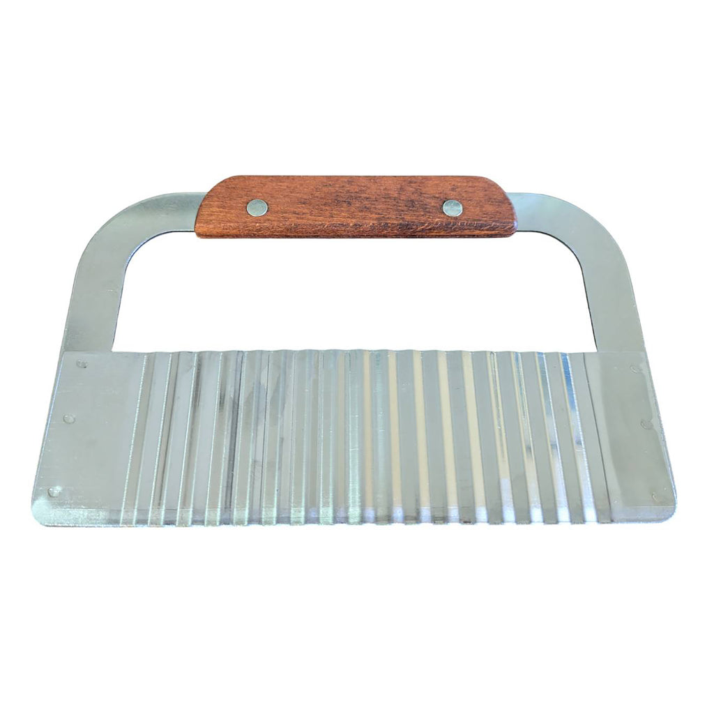 Description Heavy duty 7" corrugated stainless steel blade with wooden handle. Used for french fries, carrots, etc.