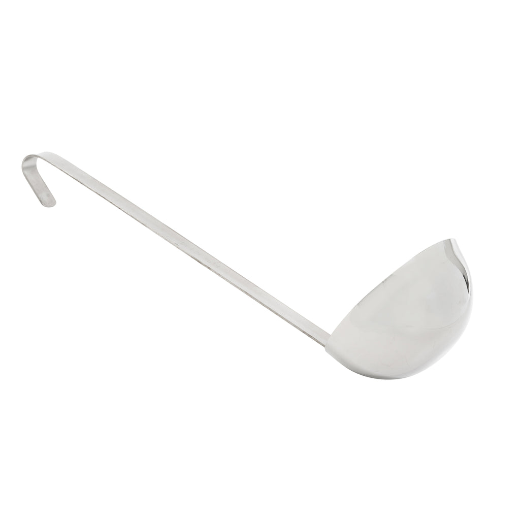 Crafted from thick-grade Stainless Steel, the Adcraft 12 Oz. Ladle with 14" handle simplifies serving soups, stews, and other tasty liquid menu items at your busy eatery. The heavy-gauge, two-piece Stainless Steel construction ensures more substantial weight than other plain utensil patterns, and the long handle allows for greater control while dishing out sauces, broths, and more. The 12 Oz. ladle has an attractive brush finish making it a welcome addition to any commercial kitchen environment. NSA Certified.