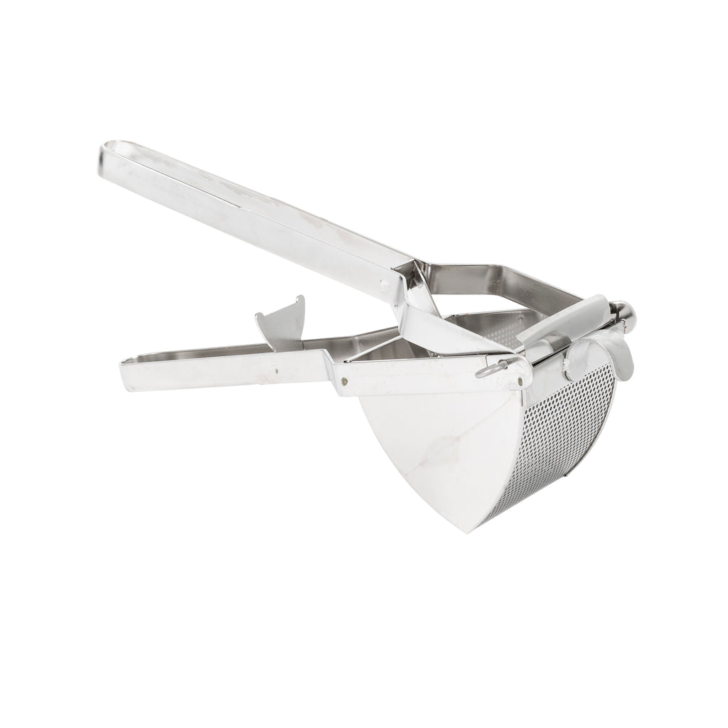 Perfect for busy restaurants and catering events, the Adcraft Potato Ricer is ideal for preparing sizeable portions of mashed potatoes and other soft vegetables. The all-stainless steel construction is built for heavy-duty culinary use and one-piece design is easy to operate. The pan hook offers added leverage for simple, two-handed use, and the 15" overall length with heavy support hook make it a convenient tool for light duty tasks. The 5" x 4-1/2" hopper with fine holes allows for smooth mash potatoes and other exquisite side dishes. Simplify your back-of-the-house prep with the Adcraft Potato Ricer. NSF Certified.